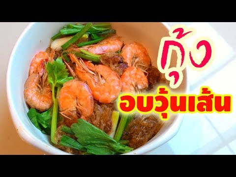 กุ้งอบวุ้นเส้น อาหารไทยสูตรอร่อยง่ายๆ ในหม้อหุงข้าว วิธีทำอาหารเมนูกุ้ง ทำอาหารง่ายๆ หอมสมุนไพรขิง, Shrimp Glass Noodles, Goong Ob Woonsen